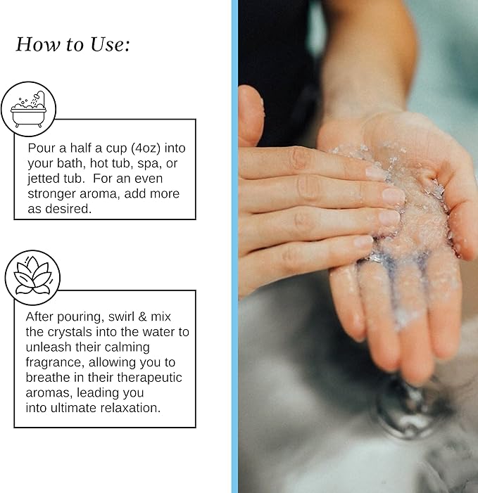 • SKIN-SOFTENING VITAMIN BLEND: Packed with vitamins and minerals, these epsom salt bath salts deeply moisturize and condition your skin, leaving it silky smooth after every soak.