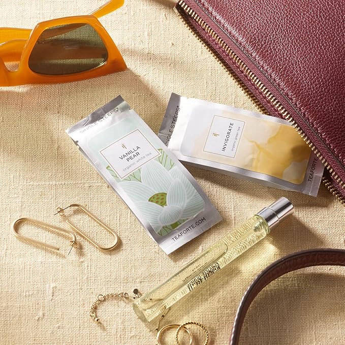 Tea Forte Green Tea Assortment Single Steeps Loose Leaf Premium Tea Gift Set Sampler, 15 Count 3 of Each Assorted Blends, Pre-Portioned Single Serve Pouches, Steeps 12 oz