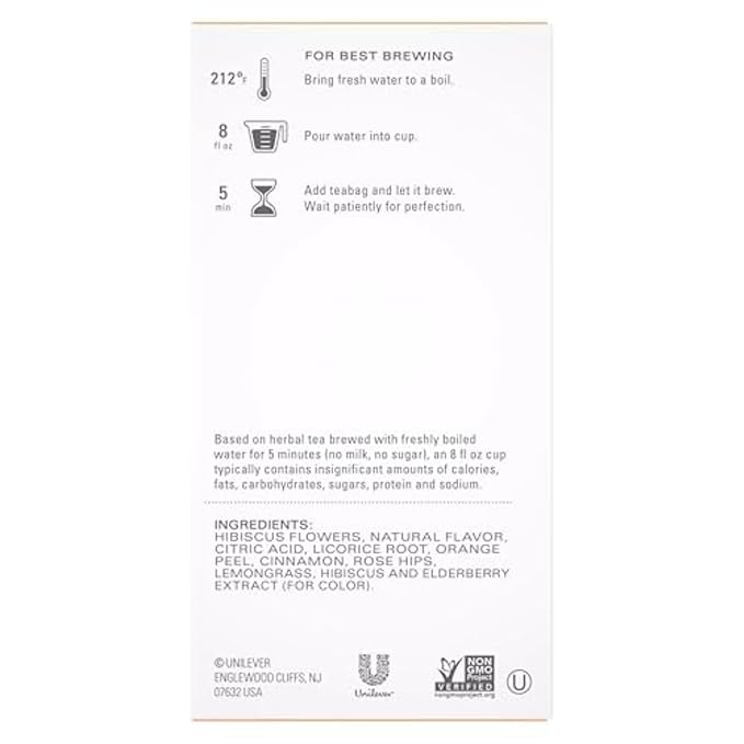 • DELICIOUS FLAVOR: Herbal tea bags offer a tropical blend of hibiscus flowers, citrusy orange peel, sweet licorice root, rose hips, and warm cinnamon balanced by bright lemongrass