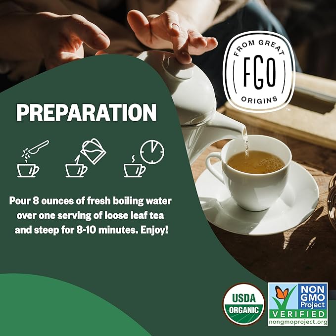 FGO Organic Nettle Leaf Loose Tea, Cut and Sifted, Caffeine Free, 16oz Bulk Resealable Bag, Packaging May Vary (Pack of 1)