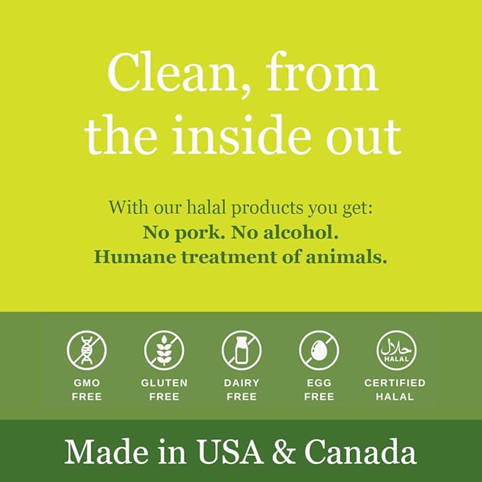 • Biotin, Collagen, Silica, Vitamin E, and Vitamin C in one delicious halal gummy, all of which are all critical to help hair, skin and nail grow.