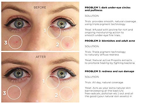 • TRIPLE-PIGMENT TECHNOLOGY: Triple-pigment technology diffuses the look of dark circles, redness, breakouts, and sun spots without ever looking cakey.