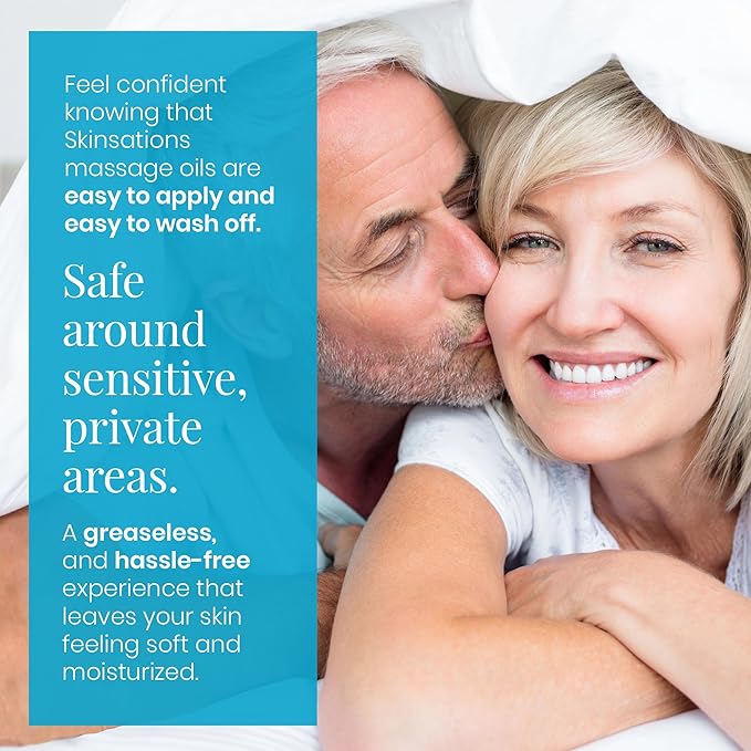 • 100% Natural & Skin-Friendly – Gentle on all skin types and ideal for sensitive skin. Skinsations is easy to apply and wash off, safe for use in and around private areas, doesn't stain bedding, ensuring a greaseless, hassle-free experience.