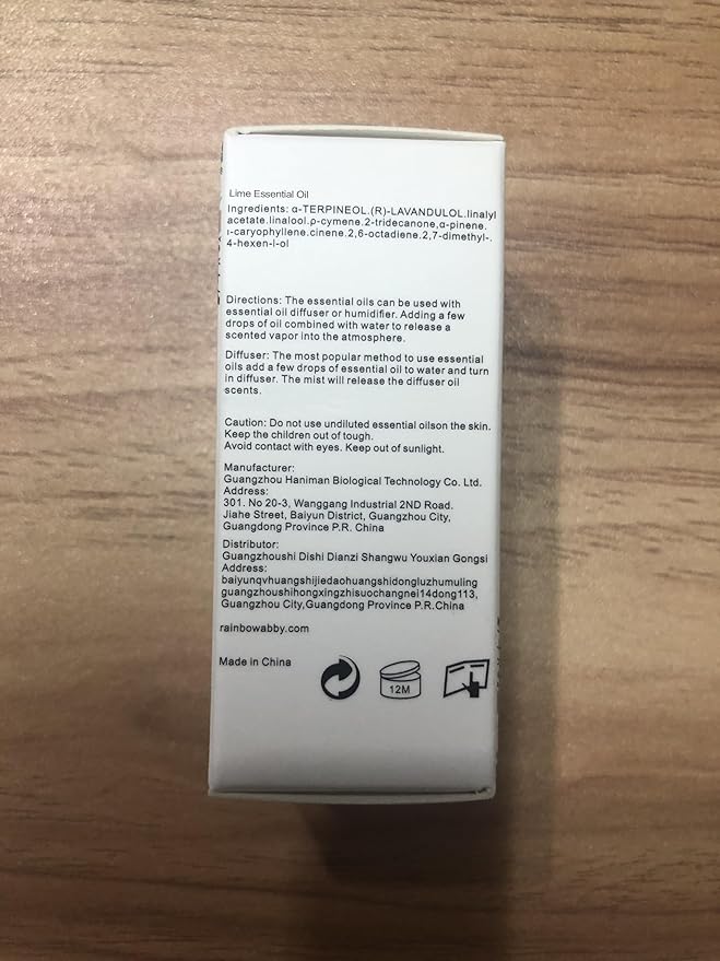 • RAINBOW ABBY Lime(Citrus aurantifolia)Essential Oil has sweet, tart, citrus scent. Simply use some throughout a room of house.