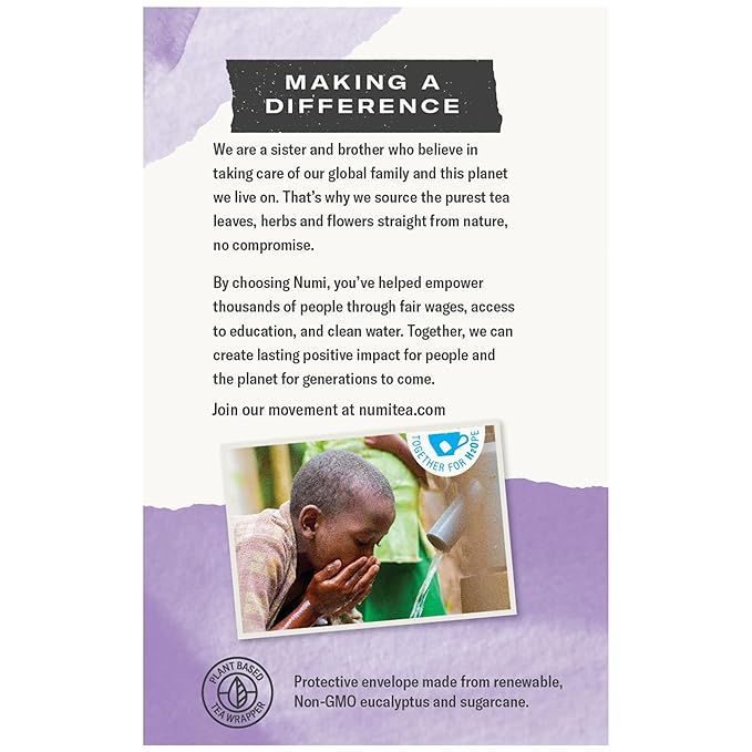 • Bagged Tea: Numi's organic full-leaf quality teas come in convenient tea bags for the perfect brewing every time; Individually wrapped tea bags ensure your tea is fresh, every time