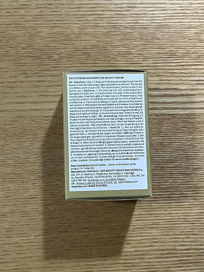 Whamisa Organic Cactus Bouncy Serum, 48 hrs Inner Skin Moisture, 72 hrs Hydrating and Moisturizing, Postbiotics, Facial Ampoule (52ml)