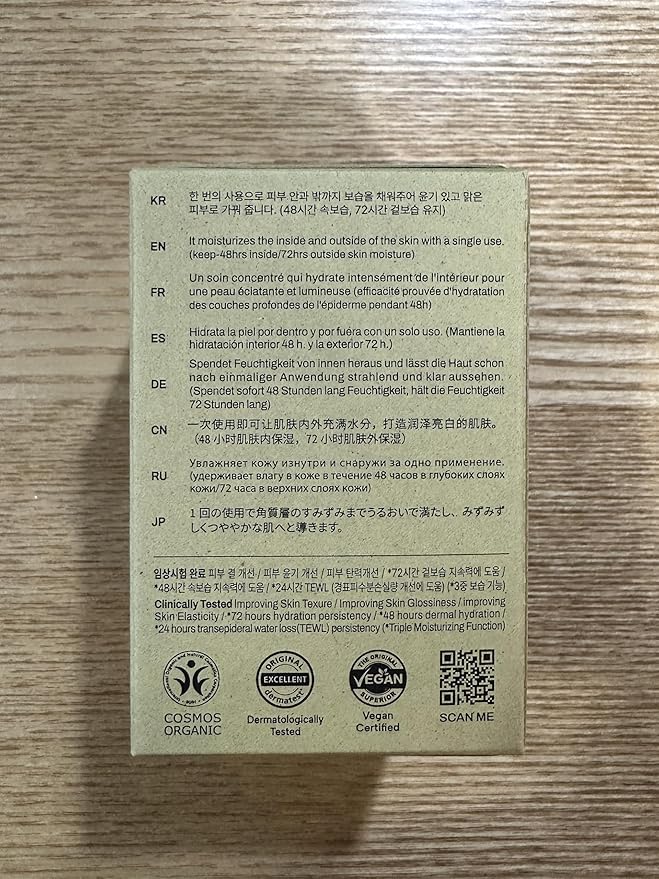 • CERTIFIED & CLINICALLY PROVEN : COSMOS ORGANIC, DERMATEST-EXCELLENT, and VEGAN Certified. Demonstrated 72-hour surface hydration, 48-hour dermal hydration, 24-hour TEWL improvement, and proven enhancements in texture, glossiness, and elasticity.