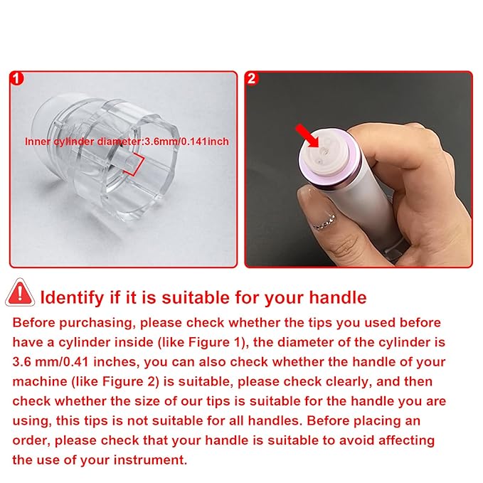• 【USAGE AND NOTICE】Please pay attention to whether the product matches the size and shape of the handle before purchasing. If not, you can go to our other link selection. Remove from the packaging, ensuring that it is correctly fitted and locked in the internal slot. Then screw tightly onto the appropriate handle required. Switch on the machine.When finished, unscrew the accessories and dispose of tips properly. Clean the handle and the machine after use.