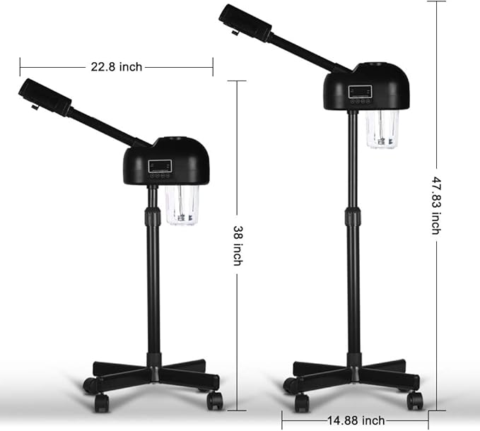 • 3 in 1 Facial Steamer: The machine has 3 functions: steam, and timer. And functions can be individually turned on or off according to your needs, which can facilitate your work to the greatest extent. Cleanse your skin with this facial standing steamer. It has a dual action mode that uses negative ions and boiling water to produce infused steam.