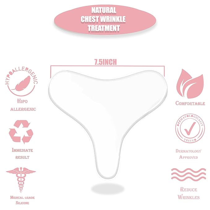 • EASY TO USE AND COMFORTABLE: This silicone chest pad feature a self-adhesive surface that ensures an easy attachment and removal without leaving any residue. These chest pads for wrinkles are discrete and comfortable so you can wear it while you are sleeping without experiencing any discomfort. This silicone chest pad anti wrinkle reusable patches help you start improving your skin's tone and elasticity after just a few applications.