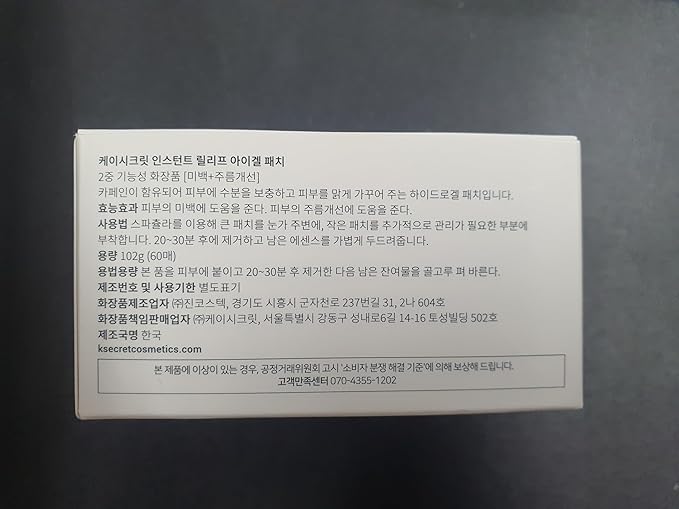 KSECRET Instant Relief Eye Gel Patches, 102g/3.45oz. 60pcs (15 full pairs) with CAFFEINE | Korean Skincare | Under Eye Cooling Masks for Anti-Wrinkles, Dark Circles, Puffiness, and Under Eye Bags…
