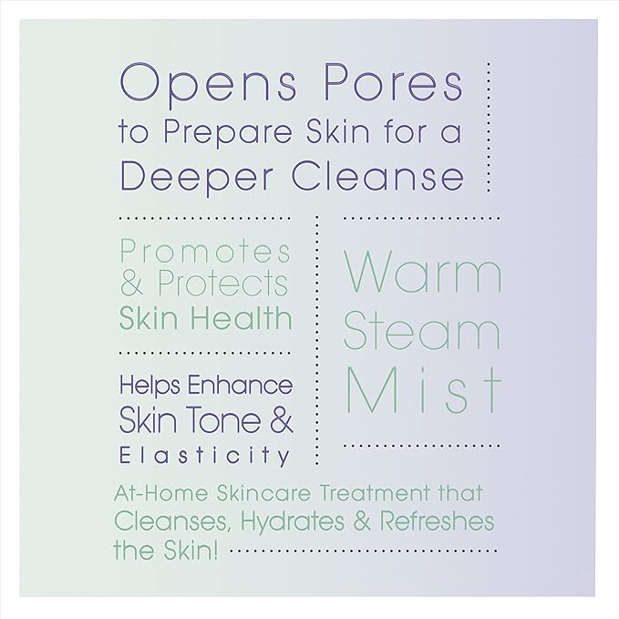 • Deep Facial Cleanse: Cleanse, hydrate, and refresh your skin all at once, anytime you like. The moisturizing steam loosens dirt, oil, and blackheads to ensure a deeper cleanse, improve skin tone and elasticity, and bring out your skin's natural beauty.