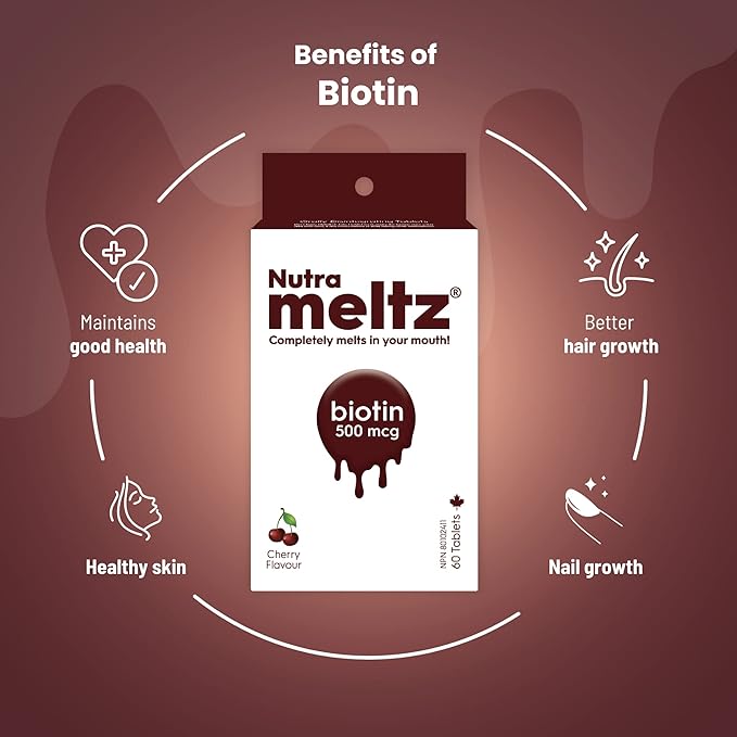 Biotin 500 mcg I Supports Healthy Hair, Nail & Skin I 60 Melting Tablets - 1 Pack I Cherry Flavor
