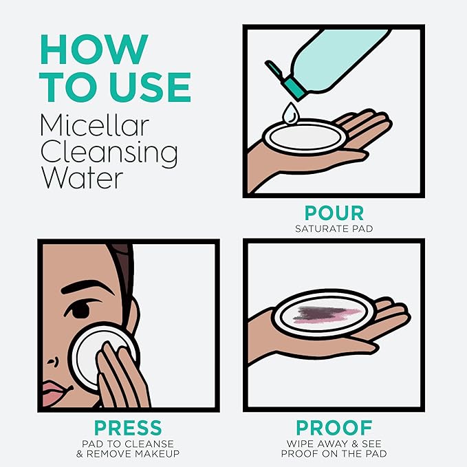 • Micellar Water Makeup Remover: Like a magnet, Micellar Water face cleanser captures and lifts away dirt, oil and makeup without harsh rubbing. No need to rinse after use. Cruelty-free, non-comedogenic, dermatologist and ophthalmologist tested