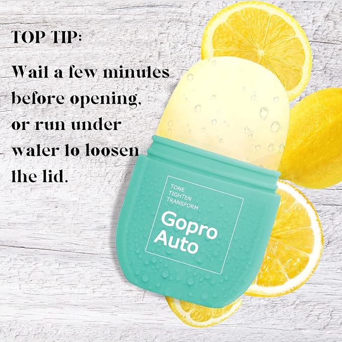 • 🙌🏼 EASY TO USE: Fill the Goproauto Cube Ice Face Roller with water. Once, frozen, apply the ice to your skin in 30 second intervals in circular motions. Run under hot water to loosen lid. Wait a few minutes before opening. For optimal results, use daily.