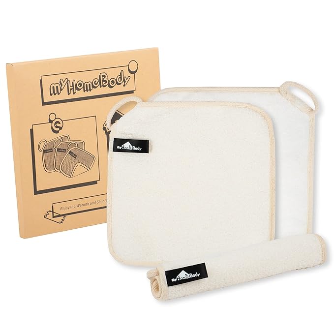 myHomeBody Dual-Textured Exfoliating Washcloth with Soft and Scrubbing Side, Body Exfoliation Scrubber for Bath, Shower, Durable 3 Layer Construction, Ivory, Set of 3