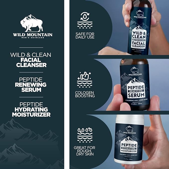 • MEN’S SKINCARE KIT: Get healthier, smoother, and clearer skin with this professionally curated kit. Includes an effective peptide serum, a quick and easy facial cleanser for men ,and a peptide moisturizer with a non-greasy feel.