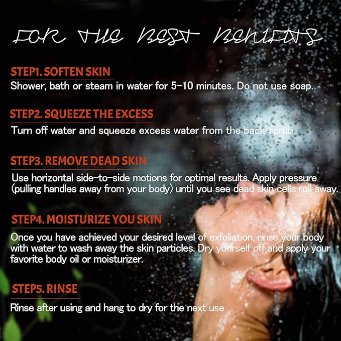• Great Coverage: widen and longen ergonomic design can cover all of your back,the handles allow for maximal movement make it easy to maneuver around your back exfoliating and leaves skin smoother
