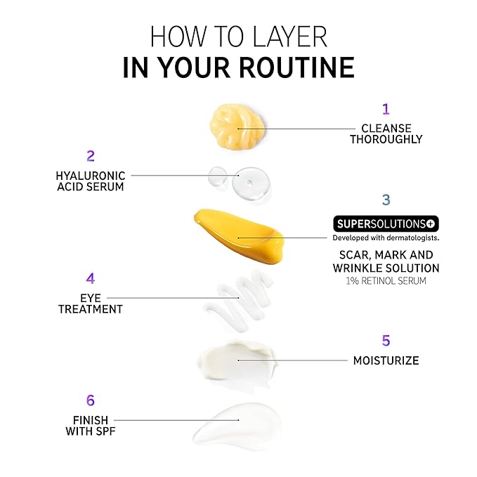 • SCAR, MARK AND WRINKLE SOLUTION - Formulated with 1% Retinol to help with stubborn marks scars or wrinkles which give the appearance of uneven texture and tone