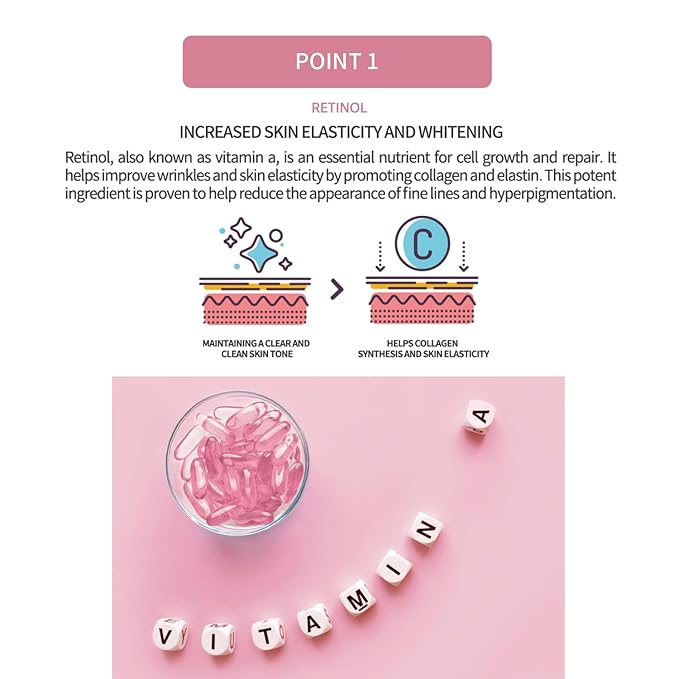• Retinol makes skin healthy by giving elasticity to the sagged and loosed skin