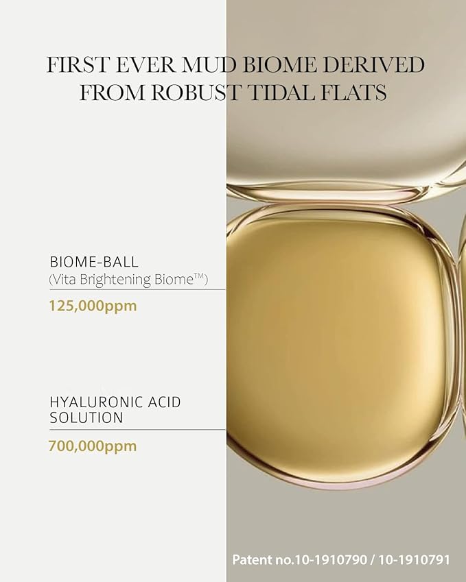 • Vitamin Tree & Tidal Mud Biomes - Featuring the world’s first mud biomes sourced from tidal mud and vitamin tree fruits (Vita-Brightening Biome), this ampoule helps brighten skin while promoting a more even complexion. The Vita-Brightening Ampoule also provides antioxidant effects, leaving your skin with a rejuvenating glow.