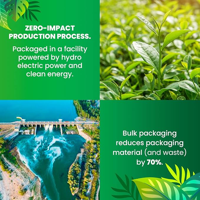 • More Tea, More Satisfaction — Packed with bright beautiful green tea harvested at its peak, our tea is so bold and flavorful you can use each herbal tea bag twice. With no individual wrappings, each pouch holds 100 bags of caffeine-free organic tea.