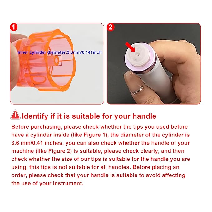 • 【USAGE AND NOTICE】Please pay attention to whether the product matches the size and shape of the handle before purchasing. If not, you can go to our other link selection. Remove from the packaging, ensuring that it is correctly fitted and locked in the internal slot. Then screw tightly onto the appropriate handle required. Switch on the machine.When finished, unscrew the accessories and dispose of tips properly. Clean the handle and the machine after use.