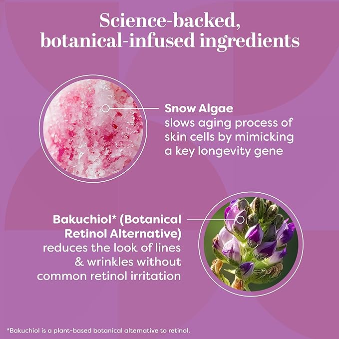 • INNOVATIVE BLEND: Not your average anti aging face cream; patent-pending formula features Snow Algae to slow the aging process of skin cells, Aloe to soothe and deeply hydrate, and botanical retinol alternative Bakuchiol to improve the appearance of skin elasticity and fine lines and wrinkles, revealing a healthier-looking complexion.