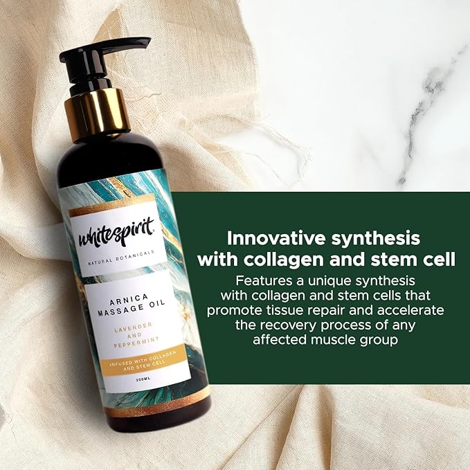 Arnica Massage Oil for Massage Therapy by WHITESPIRIT Sore Muscle Massage Oil for Body, Lavender & Peppermint, Infused with Collagen & Stem Cell, 10oz/300ml