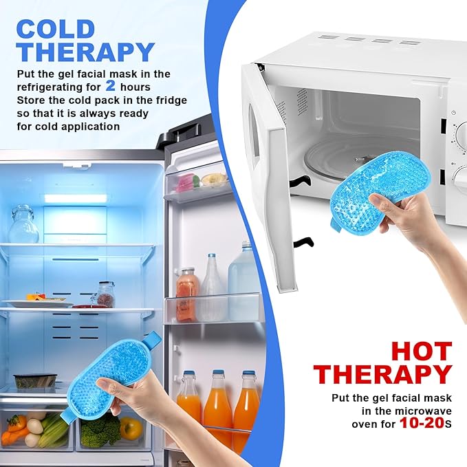 • 👩【2 Cold Compress Methods】①Put eye cooling gel mask into the refrigerator for 30-60 minutes,take out the product,rub it with your hands,and put it into the bag after it reaches a comfortable temperature.②Put eye cooling gel mask into the freezer for 15-30 minutes,take the product out,rub it with your hands to reach a comfortable temperature,then put it into the bag and use it.