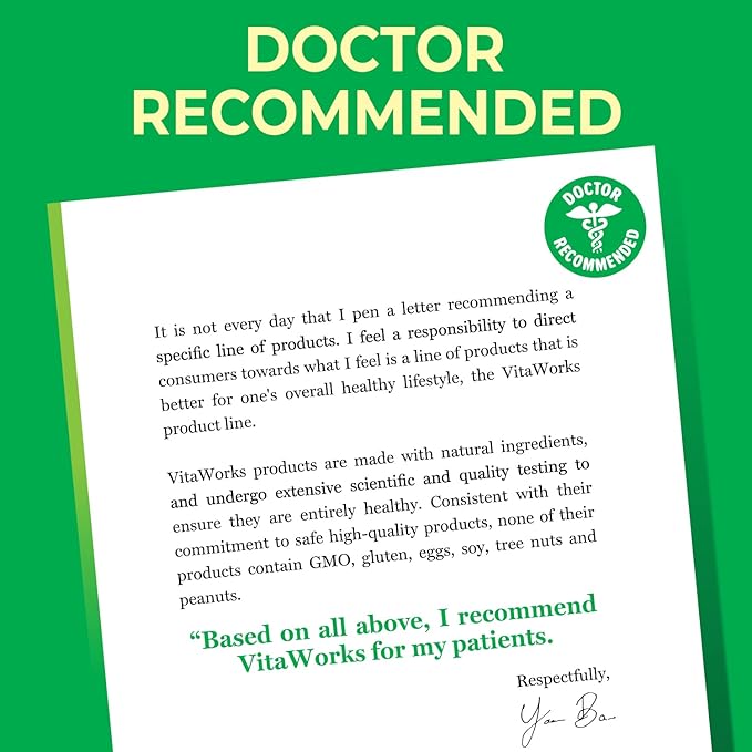 • DOCTOR RECOMMENDED: VitaWorks spares no time researching, testing, and analyzing our products. We go to great lengths to ensure that we deliver the highest quality products possible with top-notch ingredients. All of our supplements are backed by the endorsement of an acclaimed family doctor.