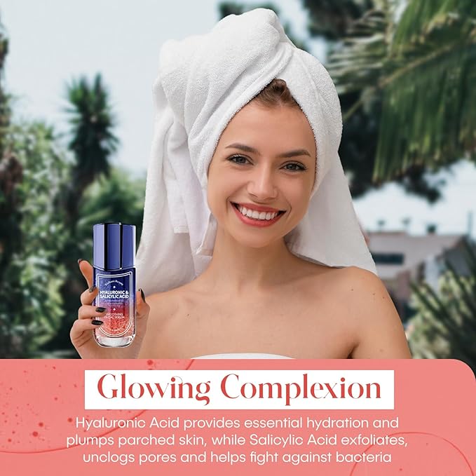 • Product Benefits : Hyaluronic Acid Hydrates, smooths, and plumps dry or wrinkled skin. Particularly helpful for combating dryness and improving skin texture and elasticity; Salicylic Acid is Known for its exfoliating, pore-cleaning, and bacteria-fighting abilities, helping with oily, acne-prone skin, helping prevent whiteheads and blackheads. Hyaluronic Acid Hydrates, smooths, and plumps dry or wrinkled skin. Particularly helpful for combating dryness and improving skin texture and elasticity; Salicylic Acid is Known for its exfoliating, pore-cleaning, and bac… See more