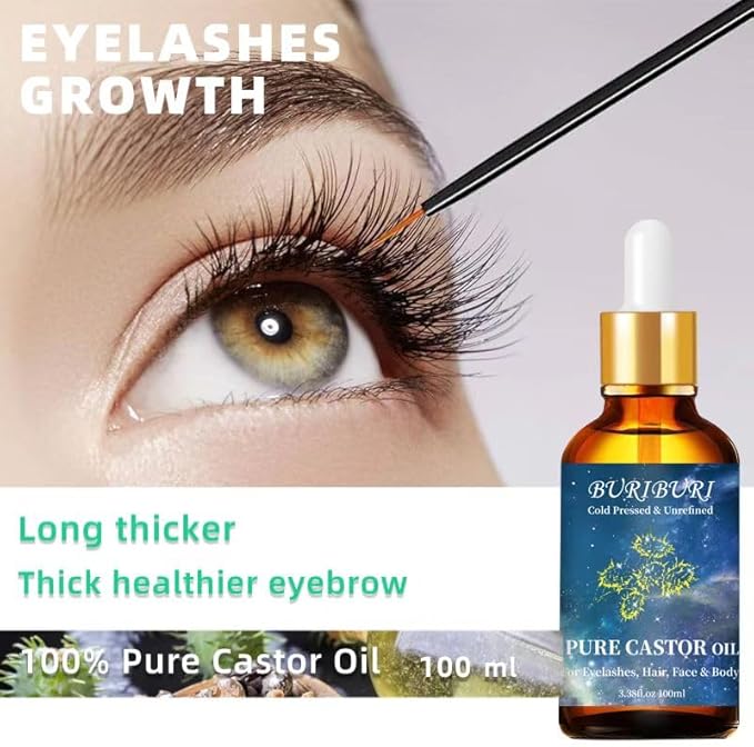 BURIBURI Castor Oil Pure Carrier Oil with Applicator Kit, 100% Pure, Organic, Cold-Pressed, Natural Castor Oil 100ml/3.38fl.oz