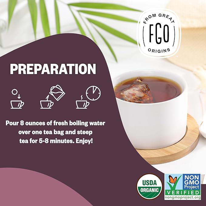 FGO Organic Rooibos Chai Tea, 100 Count, Eco-Conscious Tea Bags, Resealable Bag, Packaging May Vary (Pack of 1)