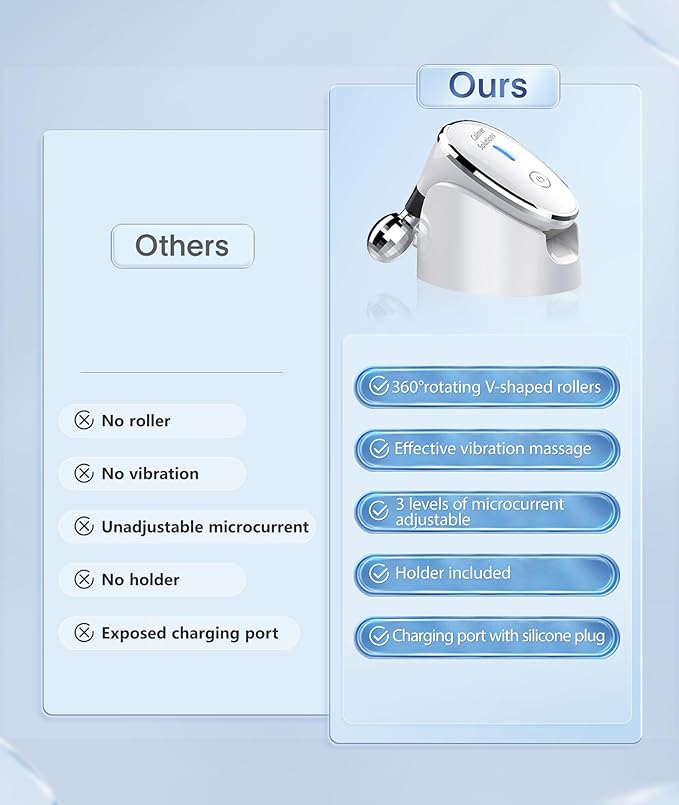 • The V-shaped face roller can glide smoothly on your skin.