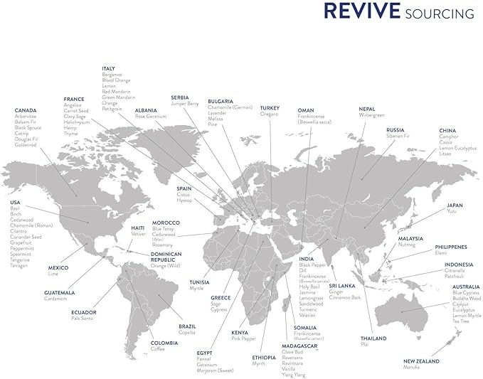 • Quality starts with Farms and Sourcing. REVIVE Essential Oils are sourced from around the world, from the specific regions of the world where that species of plant or tree grows best.