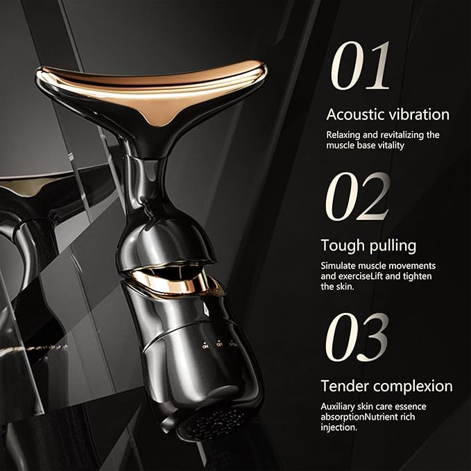 MMRH Firming Wrinkle Beauty Devicer for Facial/Neck/Eye, Multifunctional Vibration Massage Instrument, 3-in-1 Facial Skincare Instrument for Skin Care for Improve,Smooth and Tightening Skin (Black)