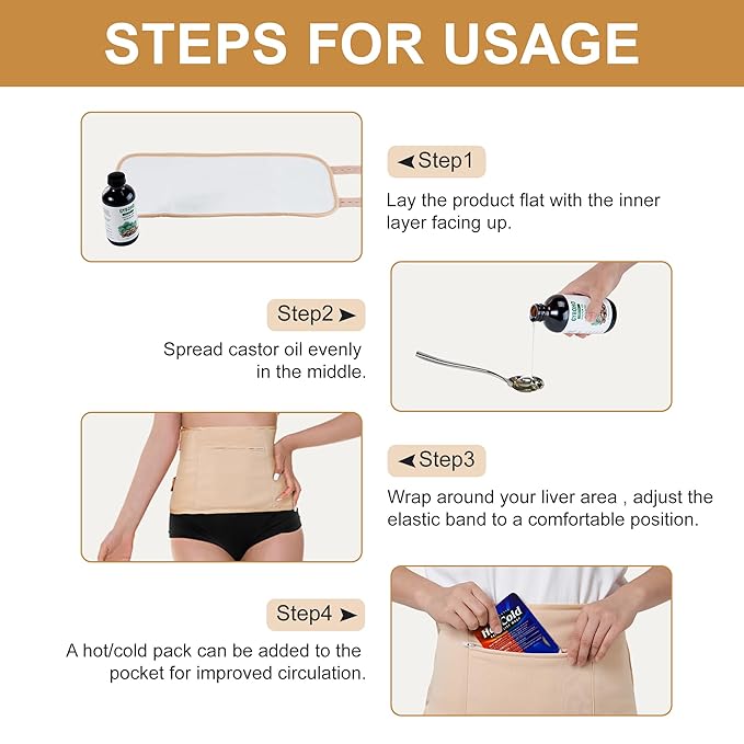 • Castor Oil Pack Wrap Skin Friendiy Material : The organic castor oil wrap is made from organic cotton, which is skin-friendly, Comfortable to wear,low-allergenic, and machine washable,Reusable. The outer layer of the pack is made from TPU (thermoplastic polyurethane), a waterproof and oil-resistant material that helps prevent oil leakage. The inner layer is made from soft organic cotton flannel Cloth fabric, which is absorbent