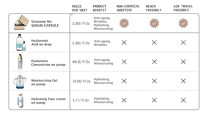 • TRAVEL-FRIENDLY CAPSULES: Compact and portable, these moisturizing serum capsules are ideal for on-the-go skincare. Enjoy hydrated, rejuvenated skin wherever you travel with VivienneHu’s convenient and travel-ready packaging.