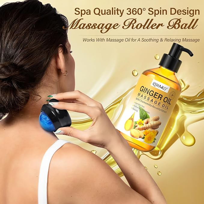 • 🎁【Great Choice For At-Home Spa】 No more expensive trips to the salon for massages. The RIHAKO Massage Oil Trio Bundle will make you feel like you're at a spa while staying in the comfort of your own home! The unique 360-degree rotating design glides over your skin and smoothes out any knots or tension. Just add a few drops of massage oil and you're ready for a soothing, relaxing massage.
