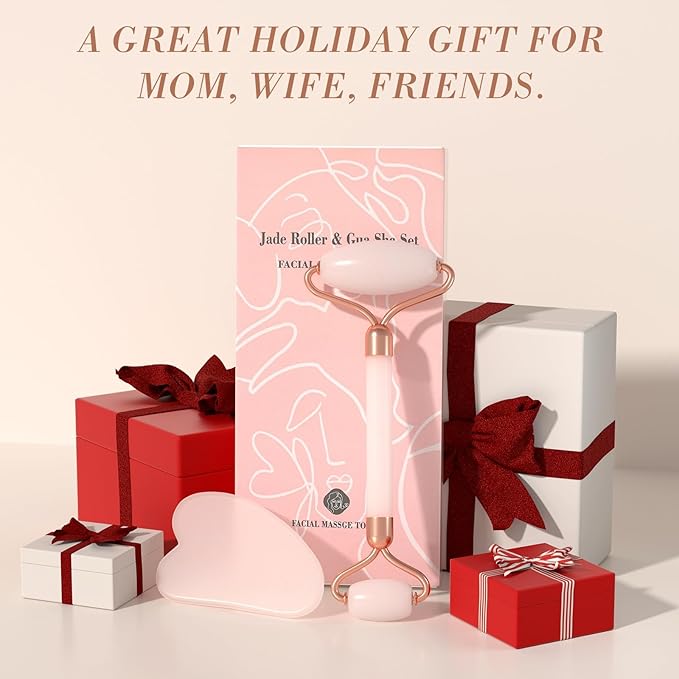 • DUAL FACIAL TOOLS: This set includes a jade roller and gua sha stone for a complete facial guasha massage routine.This Gua Sha helps improve fine lines with upwards pressure, shape your jawline, and lift your skin.