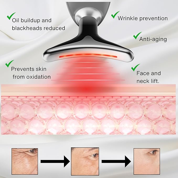 • (PREMIUM SKIN CARE DEVICE) This facial massager will heat up to 113 degrees Fahrenheit(45 degrees celsius), which allows the skin to absorb creams or lotions quicker and more effectively, so that your skin will shine and tighten.