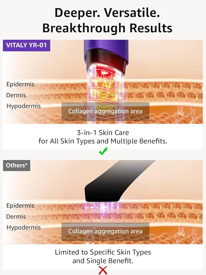 • Unlock Your Best Skin: Maximize your product benefits and transform your skin's health with the VITALY Beauty Device. Proper usage is essential for optimal results. Before use, especially if you have sensitive skin, recent treatments, or ongoing medical care, consulting a healthcare professional is crucial to avoid potential adverse reactions