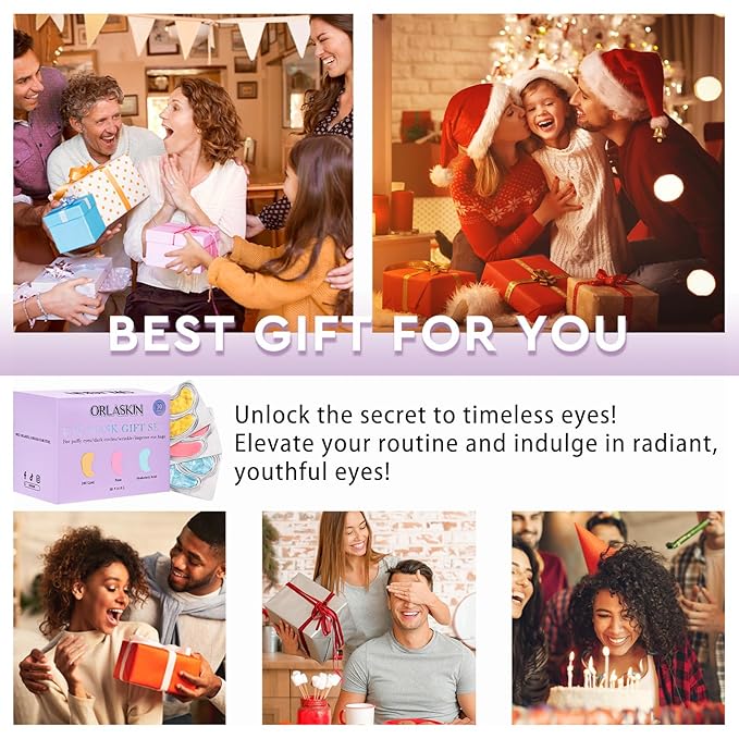 • ✨[Repair and Hydrate]: ORLASKIN eye mask is infused with hyaluronic acid and rich in moisturizing ingredients such as hydrolyzed collagen, 24K gold, plant extracts and vitamin E. It provides a lot of moisture to the dehydrated skin around the eyes, while also having a repairing effect, hydrated and youthful skin is happy skin.