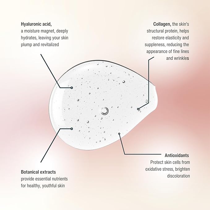 • Non-greasy formula penetrates deeply with a potent blend of active ingredients, including collagen, hyaluronic acid, and botanical extracts, deeply hydrating your skin while protecting it from environmental stressors.