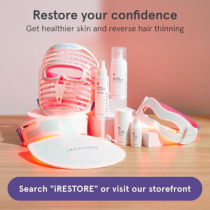 iRestore Red Light Therapy for Eyes – 180 LEDs Eye Mask with Infrared Light for Under-Eye Wrinkles, Forehead Lines, 11's, Crow’s Feet, Dark Circles – Enhances Results of Eye Cream, Lash & Brow Serums