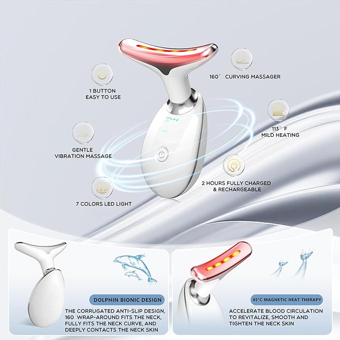 • 【7-in-1 SKIN CARE】This 7-in-1 face massager has 7 different LED light modes , which unveil a truly beautiful glow, maintain a healthy and radiant complexion, reduce double chins