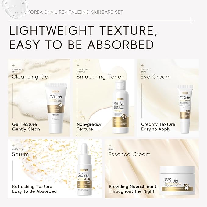 • [DAILY SKIN CARE KIT] - This snail facial skin care sets & kits is light-weight and snail moisturizing essence can be quickly absorbed by the skin, lightweight formula with soft texture, non-sticky. Skin care routine kit for women and girls to meet all your daily skincare need