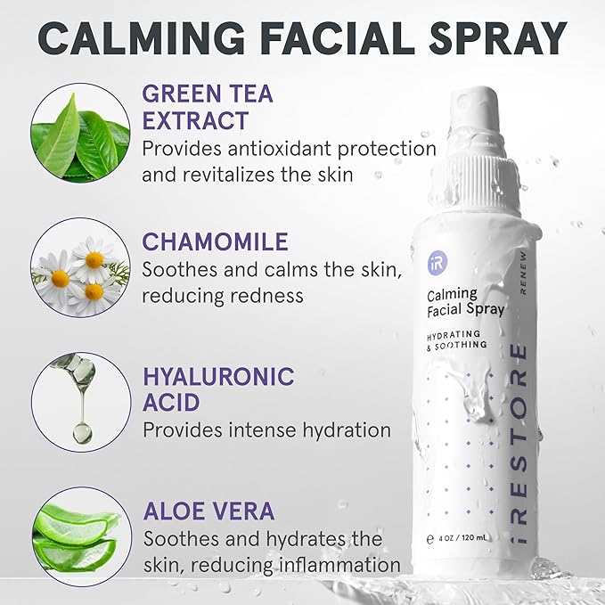 • The iRestore Skincare Set is specially formulated to prep your skin for LED light therapy. The gentle cleanser refreshes and hydrates, while the calming spray soothes and primes your skin. The face serum enhances the hydrating and skin-balancing effects post-LED therapy for optimal results