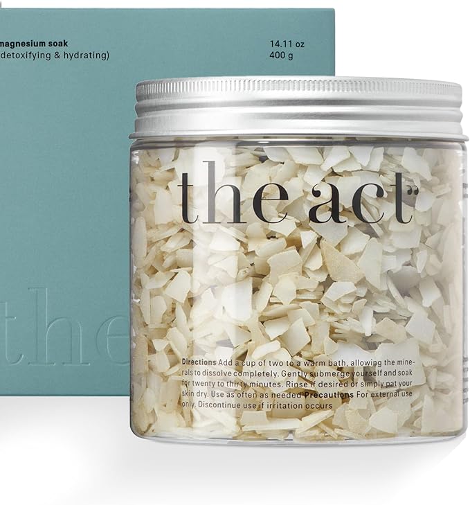 • Replenish Magnesium Levels with Ease: The Act magnesium flakes for soaking is a natural and effective way to restore magnesium levels through the skin. Regular soaking bath help calm the nervous system, promote restful sleep, and alleviate symptoms of premenstrual syndrome by reducing irritability and anxiety.